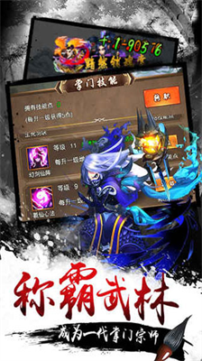建设演武场、藏书阁等门派设施,培养弟子提升整体实力,体验真实掌门人的经营乐趣。
