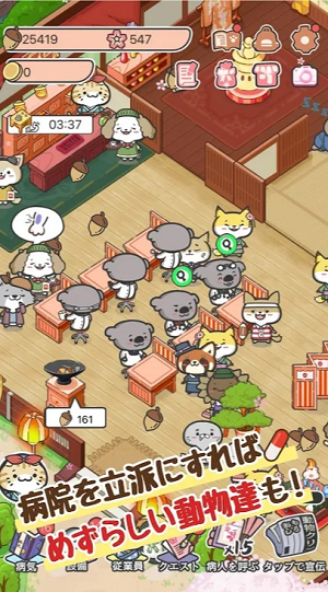 1、细腻的日系手绘画风呈现近百种动物形态,从憨态可掬的熊猫护士到机灵的狐狸药剂师,每个角色都配有专属动画