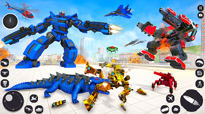 鳄鱼机器人城市激斗是一款融合变形与格斗的创新动作游戏。玩家将操控可切换鳄鱼形态的智能机甲,在开放式都市中展开保卫战。初始即开放全武器系统与特殊道具,通过虚拟摇杆实现精准操控,体验从水中突袭到高空轰炸的多维度战斗。