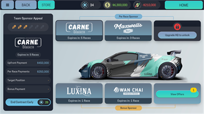 包含5个时代纪元的车辆收藏系统,完成历史经典赛事可解锁特殊涂装。车队声望值影响赞助商等级,最高可达成10年长约的全球合作伙伴关系。