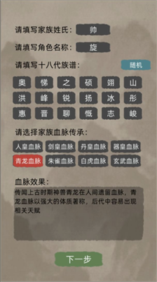 创建家族时可选择上古神兽血脉,后代弟子将有概率觉醒特殊天赋。不同血脉组合将影响修炼速度、功法契合度等核心属性。
