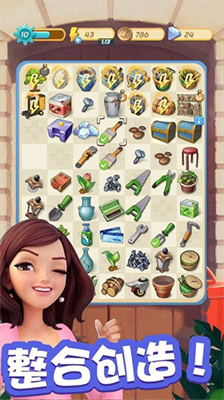 1、独创三消建造融合机制,每个成功消除组合都可转化为花园建设资源