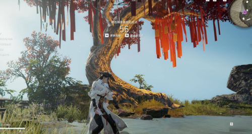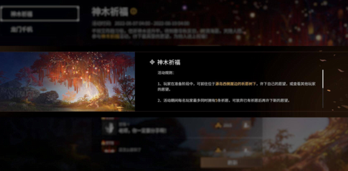 5、激活神秘古树交互功能。靠近树干约两个身位时,游戏界面将自动弹出互动提示。长按E键触发祈福动画,完成后可获得包含武器皮肤碎片、幻丝等珍贵道具的随机礼包,每日首次祈福必定获得稀有度加成效能。