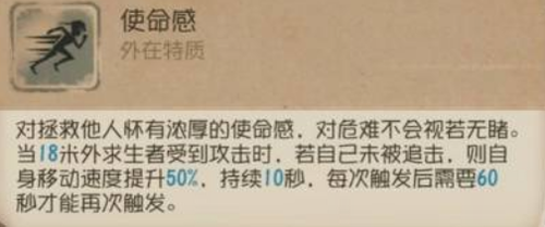 角色定位为牵制型求生者,其特质体系包含板球球棒、运动天赋、使命感与机械盲四大模块。技能组合既能实现中远程干扰,又能通过速度增益创造逃生机会,但存在机械操作短板需要团队协作弥补。