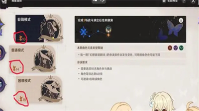 具体收益结构呈现阶梯式增长:轻简模式完成3关可获得220原石基础奖励,普通模式6关总计440原石,而困难模式需通关8个高难度关卡,最终可斩获620原石。值得注意的是,每个难度层级的最终关卡均会产出特殊代币「玩具勋章」,该道具可在特定商店兑换限定角色动作模组。