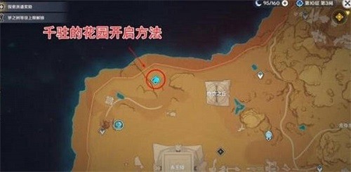 1:秘境位于须弥沙漠东北部遗迹群,传送至丰饶绿洲七天神像后向西北方飞行即可抵达目标区域。建议携带火元素角色以应对解谜需求。